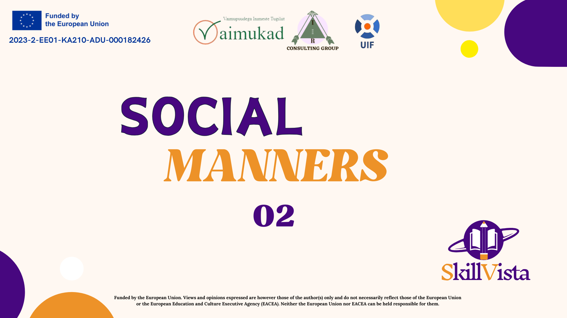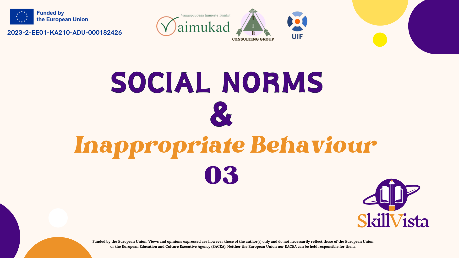 Funded by the European Union. Views and opinions expressed are however those of the author(s) only and do not necessarily reflect those of the European Union or the European Education and Culture Executive Agency (EACEA). Neither the European Union nor EACEA can be held responsible for them.